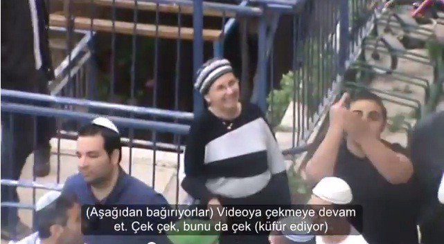 Bina aşağısındaki diğer Yahudiler ise ev sahibine küfür ve hakaretler yağdırarak Filistin'i devlet ve halk olarak nasıl bir zihniyetin işgal ettiğini ortaya koydu.