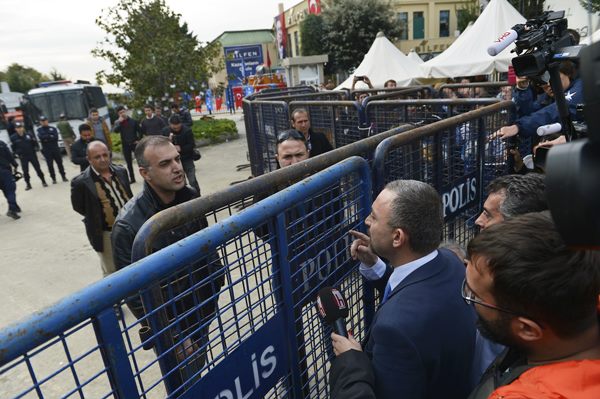 'Darbeci Baro'nun Başkanı Ümit Kocasakal, Üsküdar'da Validebağ Korusu'nun bitişiğindeki arsaya yapılması planlanan caminin inşaatına müdahele de bulunmak için eylemlerini sürdüren cami düşmanlarının arasına katıldı.