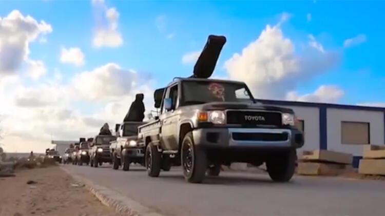 Halife Hafter güçleri, sosyal medya üzerinden destek kuvvetlerinin Bingazi'den yola çıkmak üzere hazırlanırken çekilmiş görüntülerini paylaşmıştı.
