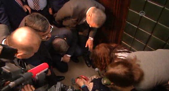 Başbakan Davutoğlu'nun konuşması sırasında grup toplantısını izlemeye gelen bir vatandaş basın locasında bayıldı. Başbakan Davutoğlu bayılan vatandaşın yanına gelerek bilgi aldı.