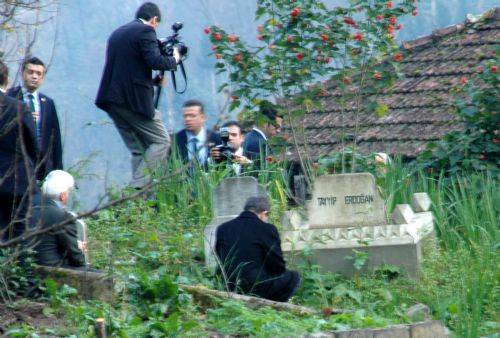 Rize'de bulunan Başbakan Ahmet Davutoğlu, Cumhurbaşkanı Erdoğan'ın köyüne giderek dedesi ve abisinin kabirlerini ziyaret etti.