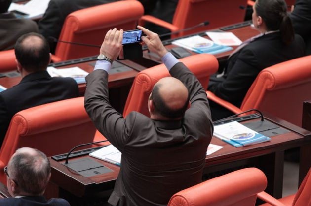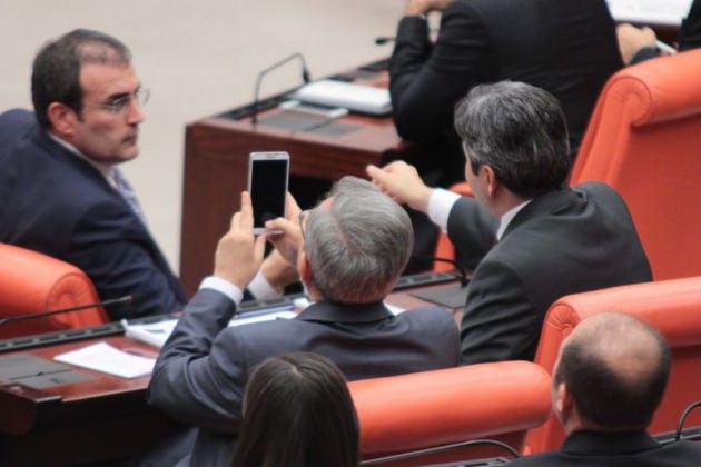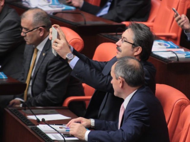 AK Partili milletvekilleri telefonlarına sarılarak Başbakan Davutoğlu'nun fotoğrafını çekti. O anlar objektiflere böyle yansıdı: