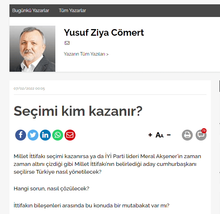 Karar yazarı Yusuf Ziya Cömert ‘Seçimi kim kazanır?’ başlıklı bugünkü yazısında ‘itiraf’ niteliği taşıyan ifadelere yer verdi.