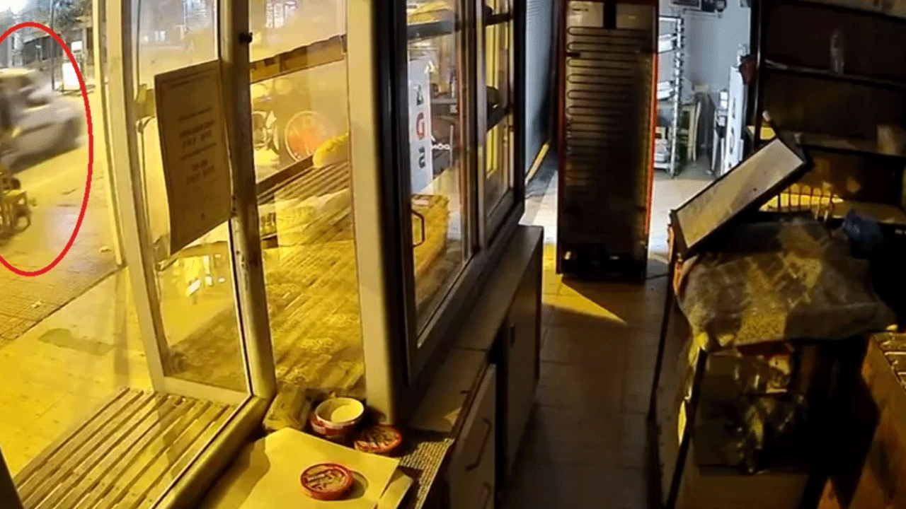 Bu sırada pide fırınının önünde oturan 2 kişi kaçıp, iş yerine sığındı.