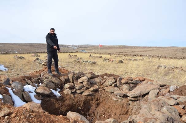 Kargapazarı Şehitliği’nde define arayan şüphelilere öfke kusan Çetin Bayram, “Kargapazar Müfrezesi Şehitliği, Birinci Dünya Savaşı’nın Avrupa ve Doğu Cephesinde, Dünya üzerindeki belki de en orijinal haliyle korunmuş mezarlığı. Şehitliğin ortasında define avcıları tarafından büyük bir çukur kazınmış durumda.