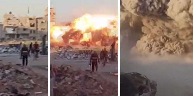 Gazze'de sivillere bomba yağdıran katil İsrail'in Al-Tuffah Mahallesi’ne düzenlediği hava saldırı cep telefonu kamerasına anbean yansıdı. Dehşete düşüren görüntülerde insanların çığlıkları ve atılan bombanın şiddetinin boyutu yer aldı.
