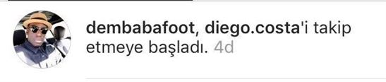 Beşiktaş camiasının sevilen ismi Demba Ba, adı siyah-beyazlı kulüple anılan Diego Costa'yı sosyal medya hesabından takip etmeye başladı.