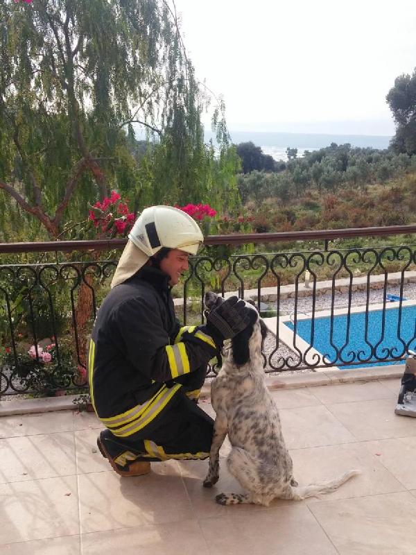 Kadadere Mahallesi Çataltepe Caddesi üzerindeki apartmanda yaşayan Ayşegül Hayes'in av köpeği, bugün öğle saatlerinde başını balkondaki demir korkulukların arasına sıkıştırdı. Hayes, kendi imkanları ile köpeğini kurtaramayınca itfaiyeden yardım istedi. İtfaiye ekipleri, demir korkulukları hidrolik makasla kesip, köpeği bulunduğu yerden kurtardı. Hayes, köpeğini kurtaran itfaiye ekibine teşekkür etti.