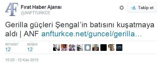 "Gerilla"ların Sincar şehir merkezinin batı ve doğu tarafını kuşatmaya aldığını iddia eden ANF, sosyal medya kullanıcıları tarafından ti'ye alındı.