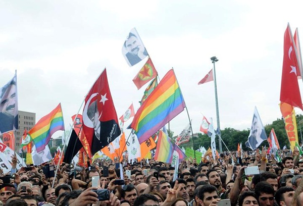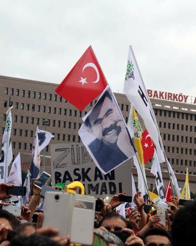 Kutlamalarda HDP'liler halay çekerken açılan bazı bayraklar dikkat çekti. Kutlamalarda, Abdullah Öcalan ve Atatürk baskılı bayraklarla PKK bayrağı yan yana geldi.