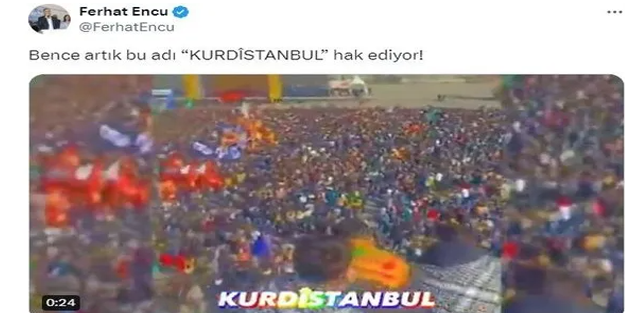 CHP'nin desteğini alan DEM Partili Ferhat Encü, sosyal medya hesabından skandal bir paylaşımda bulundu. "İstanbul, bence artık 'Kurdİstanbul' adını hak ediyor" diyen Encü'nün alçak paylaşımına tepki yağdı.