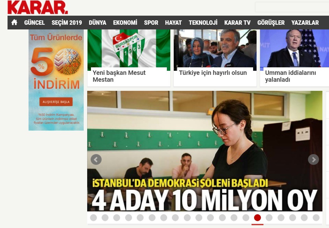 Yapılan şaibelerin ortaya çıkmasıyla tekrarına karar verilen İstanbul seçimlerinde vatandaşlar sandık başına giderken, son dönemde algı operasyonlarıyla dikkat çeken Karar Gazetesi, seçimlere ilişkin 'Demokrasi şöleni' diyerek nitelediği haberinde bağımsız adayları görmezden geldi.