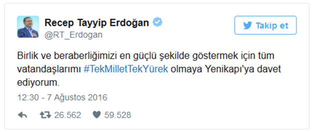 Söz konusu etiket altında Cumhurbaşkanı Recep Tayyip Erdoğan da resmi Twitter hesabından paylaşımda bulundu.