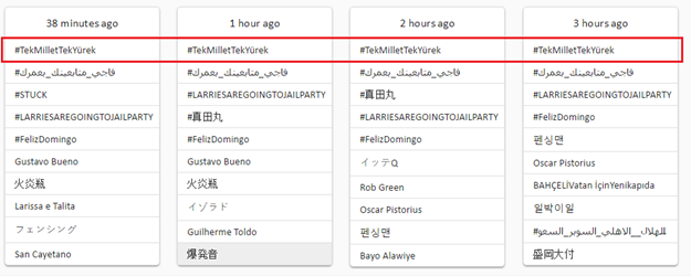 Demokrasi ve Şehitler Mitingi her yönüyle dikkat çekiyor. Siyasi parti ayırt etmeksizin milyonların akın ettiği miting, sosyal medyada da dünya gündemine oturmayı başardı. Twitter istatistiklerine göre Demokrasi ve Şehitler Mitingi, #TekMilletTekYürek etiketiyle saatlerdir dünya gündeminin zirvesinde yer alıyor.
