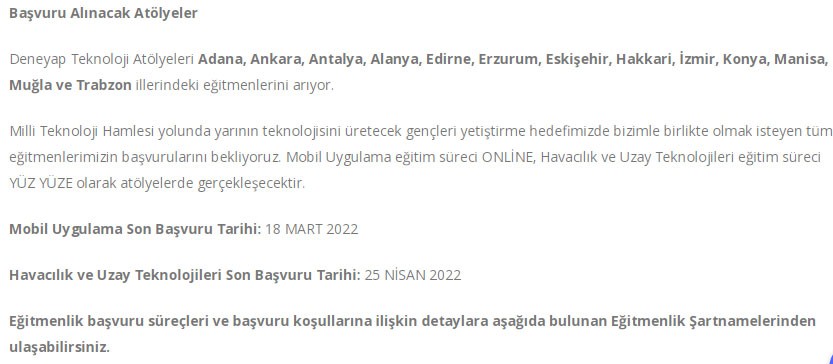 Deneyap atölye kayıtları ne zaman? Deneyap atölye uygulama sınav tarihi ne zaman?