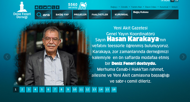 YENİAKİT.COM.TR - Cumhurbaşkanı Recep Tayyip Erdoğan'ın Suudi Araistan gezisini izleyen ekipte yer alan Gazetemiz Genel Yayın Koordinatörü Hasan Karakaya, Medine'de geçirdiği kalp krizi sonrası Hakk'a yürüdü. Deniz Feneri Yardım Derneği, cuma günü Fatih Camii'nde binlerce kişinin katıldığı cenaze töreniyle ebediyete uğurlanan merhum Abimiz Karakaya'ya karşı anlamlı bir vefa örneği gösterdi. Kurumsal internet sitesinin girişinde Hasan Abi için taziye mesajı yayınlayan Deniz Feneri Derneği, ''Yeni Akit Gazetesi Genel Yayın Koordinatörü Sayın Hasan Karakaya'nın vefatını teessürle öğrenmiş bulunuyoruz. Karakaya, zor zamanlarında derneğimizi kalemiyle en ön saflarda müdafaa etmiş bir Deniz Feneri dostuydu. Merhuma Cenab-ı Allah'tan rahmet, ailesine ve Yeni Akit camiasına başsağlığı ve sabr-ı cemil dileriz'' notunu düştü.