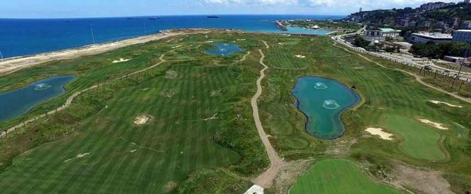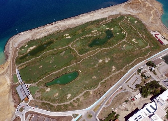 Yaklaşık 150 futbol sahası büyüklüğündeki golf sahası, deniz üzerine dolgu yöntemiyle yapılması nedeniyle dünyada ilk olma özelliği taşıyor.