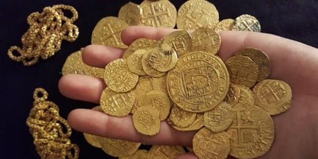 ABD' hobi olarak dalgıçlık yapan William Bartlett okyanusun dibinde 300 yıllık altın para buldu. 350 adet altın madeni paranın bugünkü değerinin 4.5 milyon dolar olduğu belirtildi.