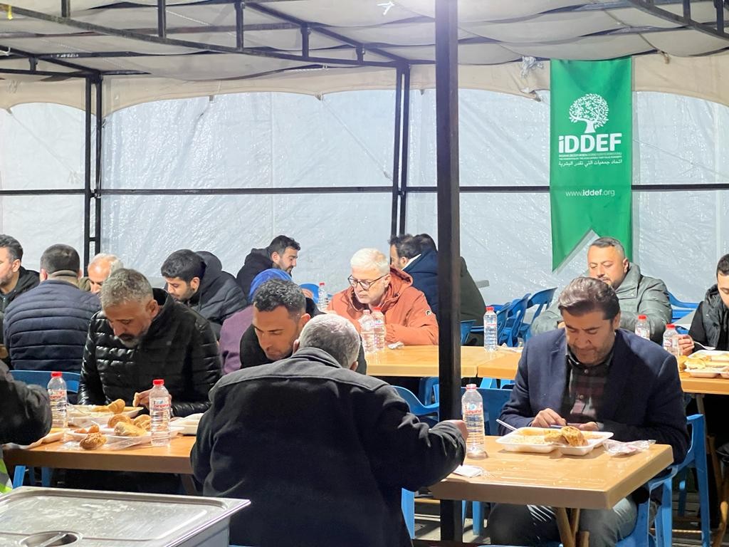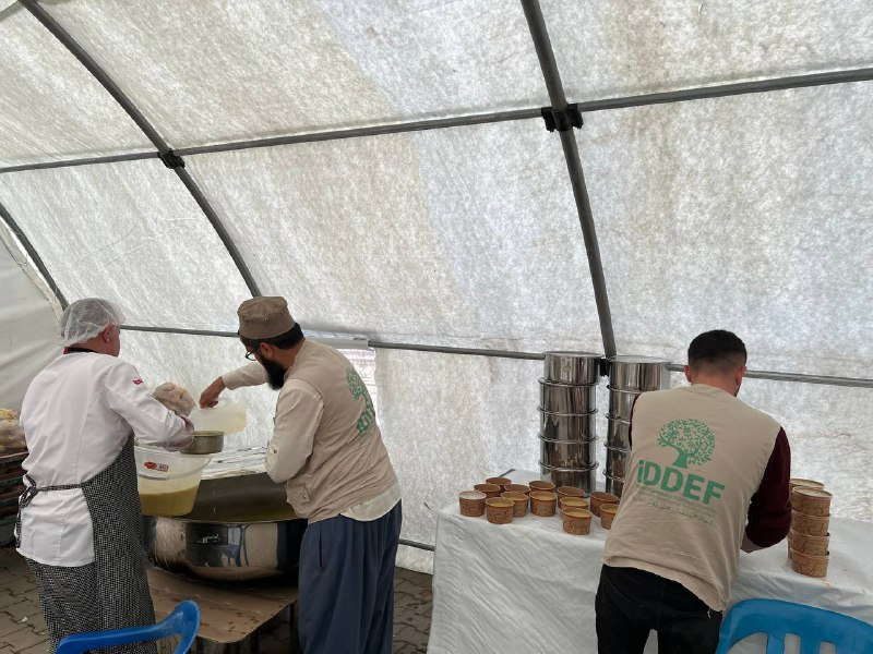 Depremin ilk günü olan 6 Şubat’tan bu yana bölgeye 220 tır yardım ulaştıran İDDEF, 5 lojistik merkezi, 2 İyilik Çarşısı, 5 aşevi ve 500'ün üzerinde görevli ve gönüllüsüyle Ramazanda da depremzedelerin yaralarını sarmaya devam ediyor. Onlarca kazanda İDDEF personeli ve gönüllülerin desteğiyle yapılan yemekler çadır ve konteyner kentlerde kalan depremzedelere ulaştırıldığı gibi, iftar ve sahur sofraları kuruluyor, mobil araçlarla da köylere iftar bereketi götürülüyor. İDDEF'in aşevlerinde her gün 20 bin kişilik iftar yemeği pişirilerek Ramazan’ın paylaşma ve dayanışma ruhu yaşatılıyor.