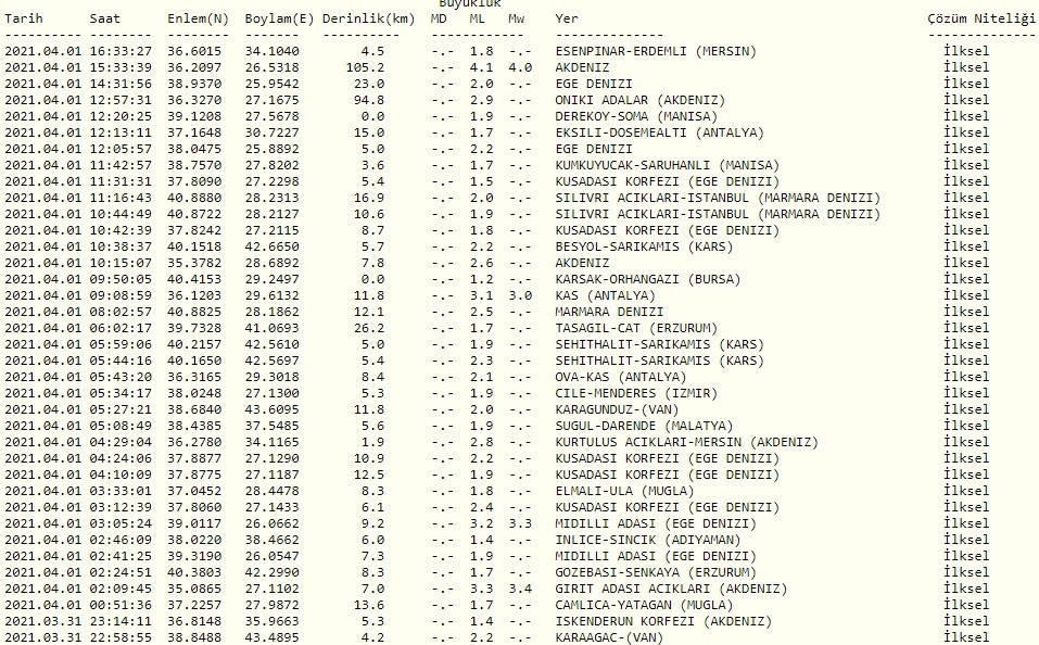 Deprem mi oldu? 1 Nisan güncel deprem listesi