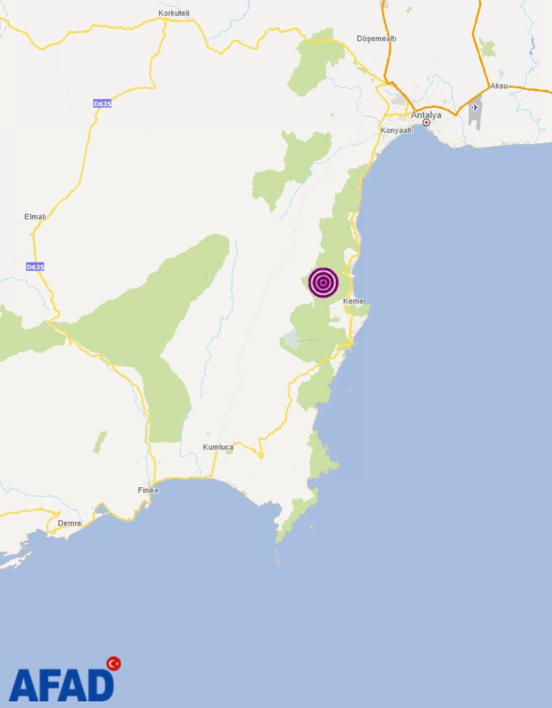 AFAD tarafından gelen bilgiler üzerine Antalya Kemer ilçesinde deprem meydana geldi. 19:43'te 4.6 büyüklüğünde yaşanan deprem sarsıntıları oldukça hissedilirken bölgede herhangi bir olumsuz ihbar alınmaması endişeleri azalttı. Antalya 4.6 büyüklüğünde deprem.
