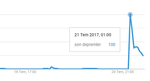 Aşağıdaki grafikte de görüldüğü üzere, depremle ilgili Google aramasının saat 01’den itibaren tavan yaptığı görülüyor.