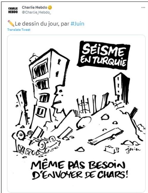 Binlerce kişinin hayatını kaybettiği Türkiye'deki depremleri nefret diliyle karikatürize eden Charlie Hebdo’nun web sitesi hacklendi.
