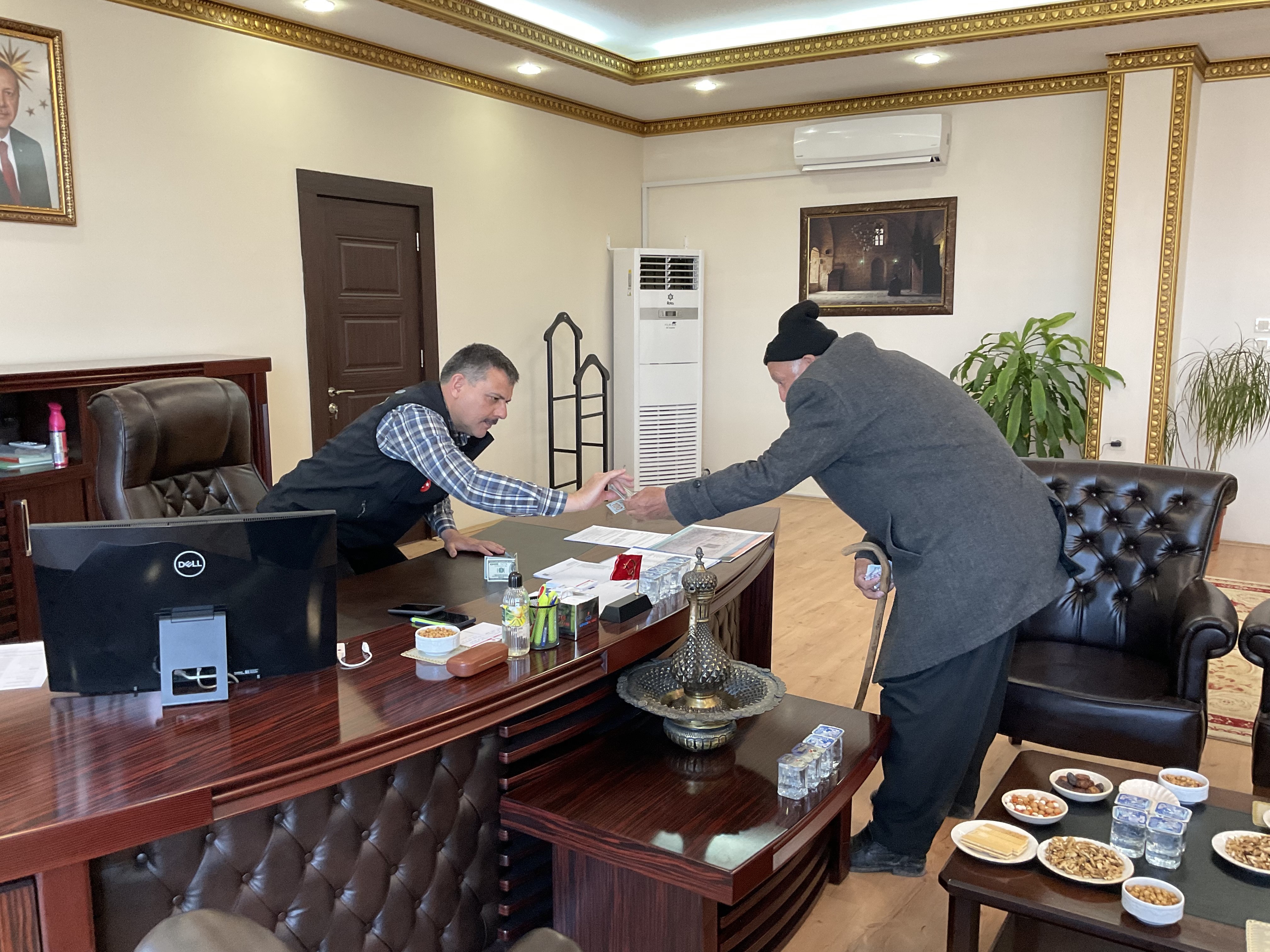 Afşin'in Hüyüklü Mahallesi'nde yaşayan Yusuf Kılınç, bölgede koordinatör olarak görevlendirilen Çorum Valisi Mustafa Çiftçi'yi ziyaret etti. Kılınç, burada umre için biriktirdiği 2 bin 100 doları Vali Çiftçi'ye teslim ederek, depremzedeler için kullanılmasını istedi.