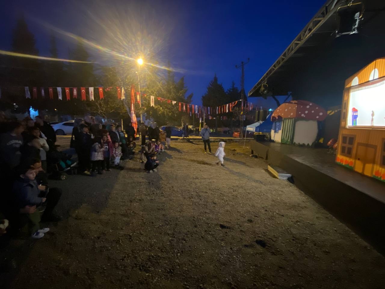 Kahramanmaraş’ta depremzedelerin ihtiyaçlarının giderilmesi için hummalı bir çalışma yürüten Beyoğlu Belediyesi, Ramazan ayı etkinliklerinde depremzede çocukları da unutmadı. Depremzede çocukların eğlenceli bir Ramazan ayı geçirmelerini sağlamak amacıyla Mobil Sahne Tırı hazırlandı. Ramazan ayının ilk gününde Beyoğlu Belediyesi’nin Kahramanmaraş Dulkadiroğlu’nda kurulan Kardeşlik Sofrası Çadırının önünde çocuklarla buluşan Mobil Sahne gecenin eğlence kaynağı oldu. Çocuklar ve aileleri, iftar sonrasında sahnelenen Karagöz ve Hacivat Gölge Oyunu’nu izledi. Renkli görürlülerin ortaya çıktığı etkinliklerle, çocukların yüzünü yeniden gülmeye başladı. Mobil Sahne Tırı Ramazan ayı boyunca her gün Kahramanmaraş’ın farklı noktalarında çocuklarla buluşmaya devam edecek.