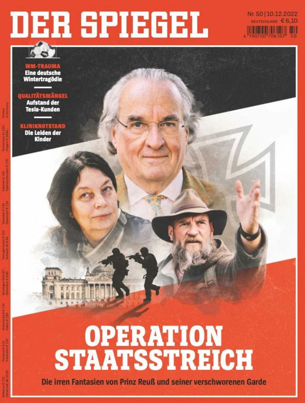 Konuyla ilgili haberin fotoğrafında, darbe planının lideri olduğu belirtilen Heinrich XIII Prens Reus'a yer verildi. Yaşananların darbe girişimi olduğunu açıkça aktaran dergi, "Operasyon: Darbe. Prens Reus ve yeminli muhafızlarının çılgın fantezileri" ifadeleri kullandı.