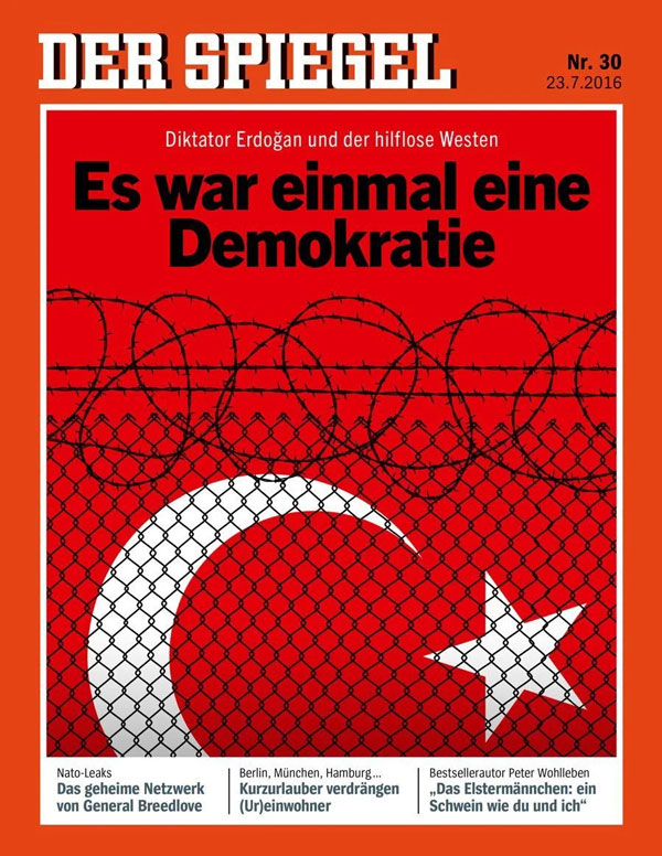 Almanya'da ülkeyi ayağa kaldıran darbe planlayan gruba yapılan operasyonları kapak konusu yapan Alman dergisi Der Spiegel, konu Türkiye olunca ikiyüzlü bir tavır sergilemişti. Kendi ülkesindeki operasyona 'darbe' diyen dergi, 15 Temmuz darbe girişiminde ise Cumhurbaşkanı Erdoğan için "diktatör" benzetmesi yaparak tamamen manipülatif bir dil kullanmıştı.