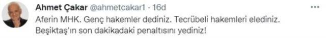 Ünlü yorumcu Ahmet Çakar bu pozisyonla ilgili, "Aferin MHK. Genç hakemler dediniz. Tecrübeli hakemleri elediniz. Beşiktaş'ın son dakikadaki penaltısını yediniz!" dedi.