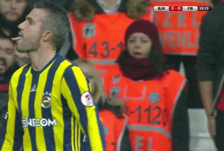 Van Persie, karşılaşmanın ilk dakikalarında Oğuzhan Özyakup'la tartıştı. Tribünlerin tepkisi sonrasında ise Hollandalı futbolcu Beşiktaşlı taraftarlara dil çıkardı.
