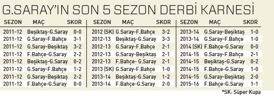 Son 5 sezonda 3 büyükler arasında oynanan derbi karşılaşmalarına Galatasaray damgasını vurdu.