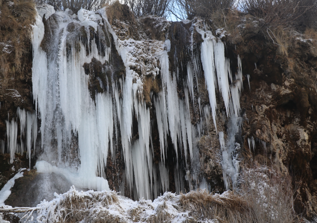 Derecik Şelalesi'nde metrelerce uzunlukta buz sarkıtları oluştu