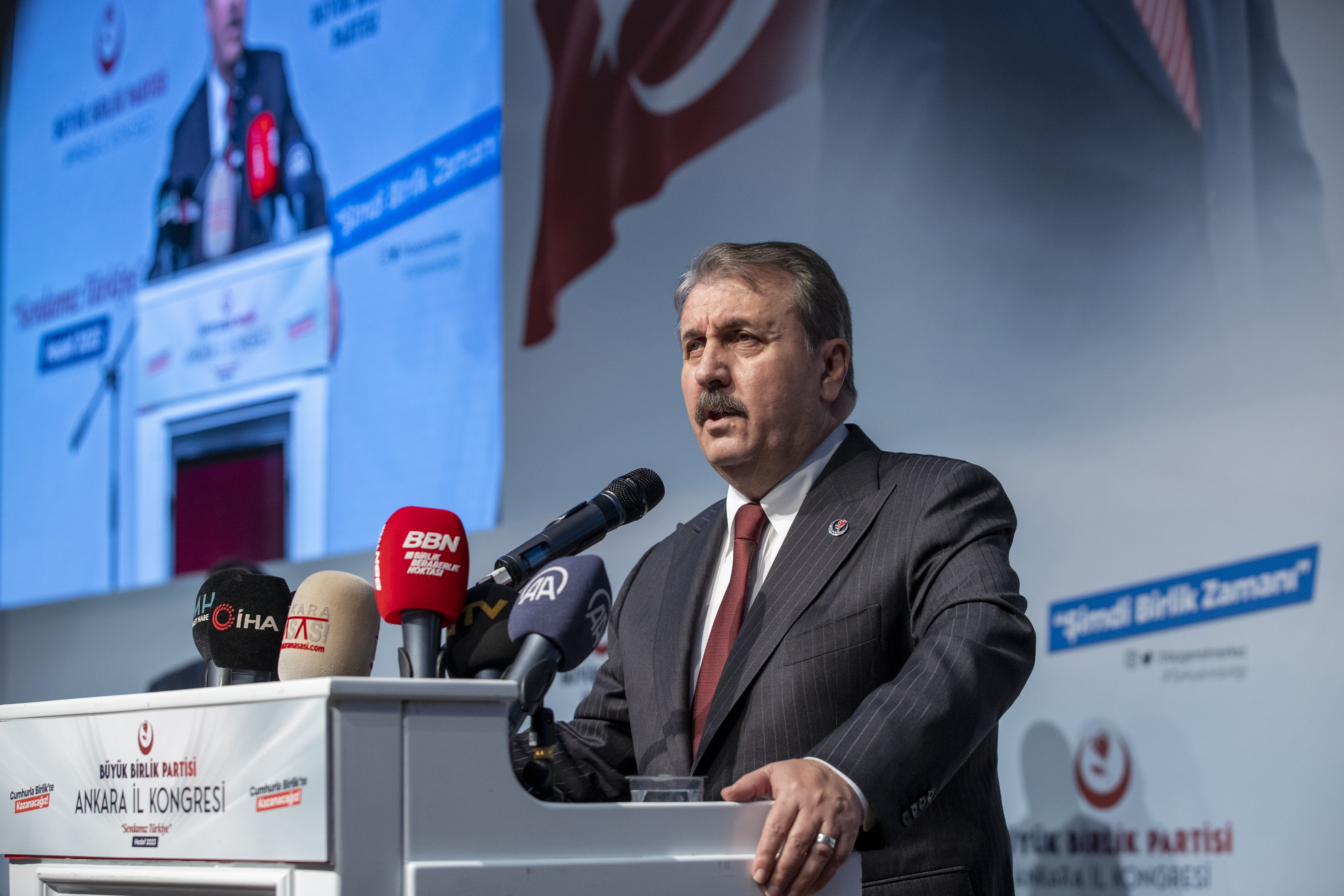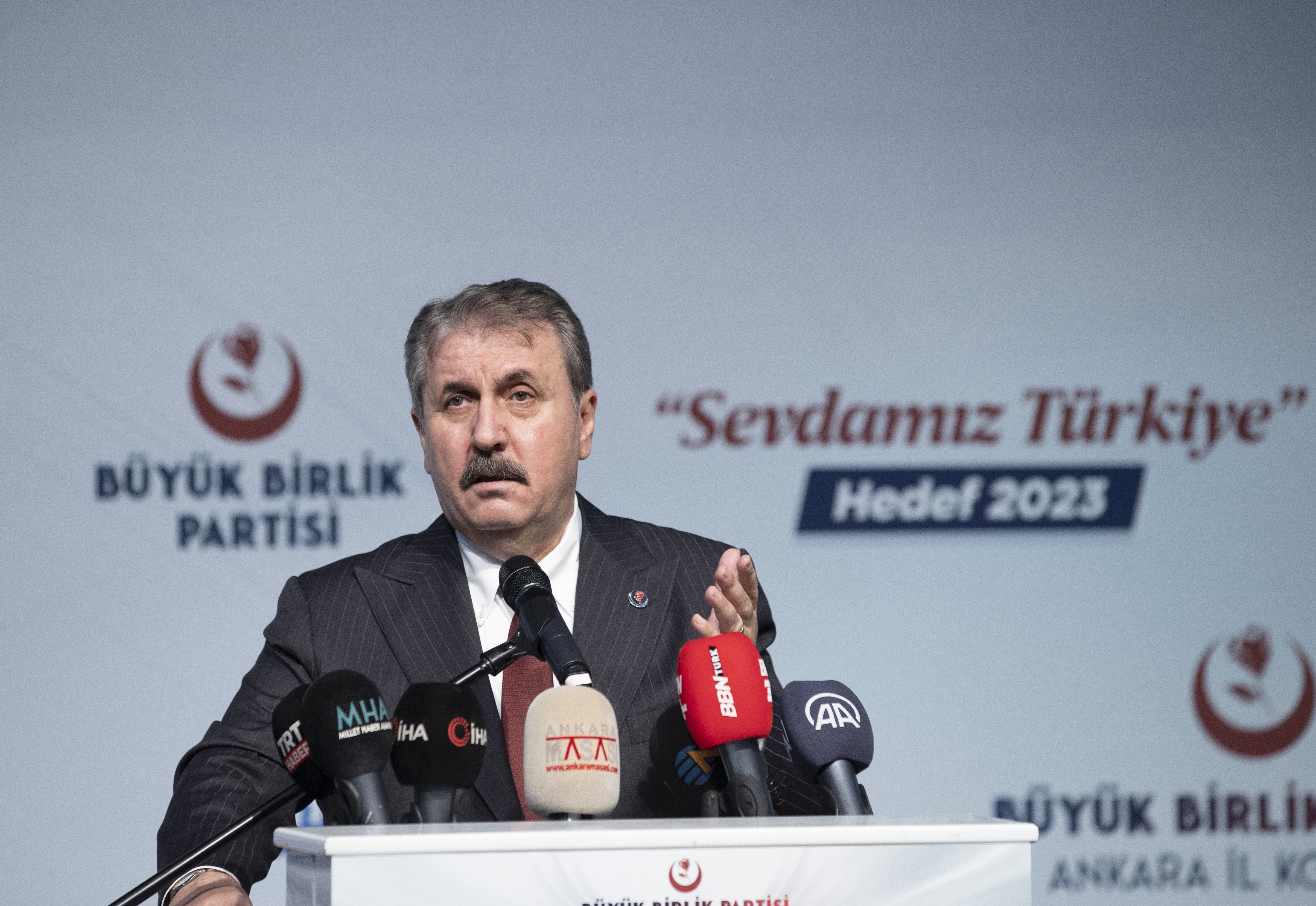 Büyük Birlik Partisi (BBP) Genel Başkanı Mustafa Destici, İstanbul Büyükşehir Belediye (İBB) Başkanı Ekrem İmamoğlu’na verilen ceza sonrası Saraçhane’de yapılan mitingle ilgili, “İYİ Parti lideri Akşener, İBB Belediye Başkanı Ekrem İmamoğlu’nu masanın cumhurbaşkanı adayı ilan etmiştir” dedi.