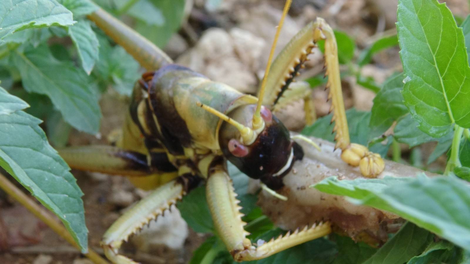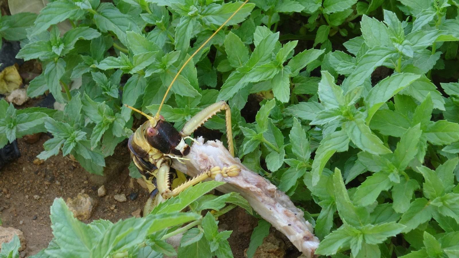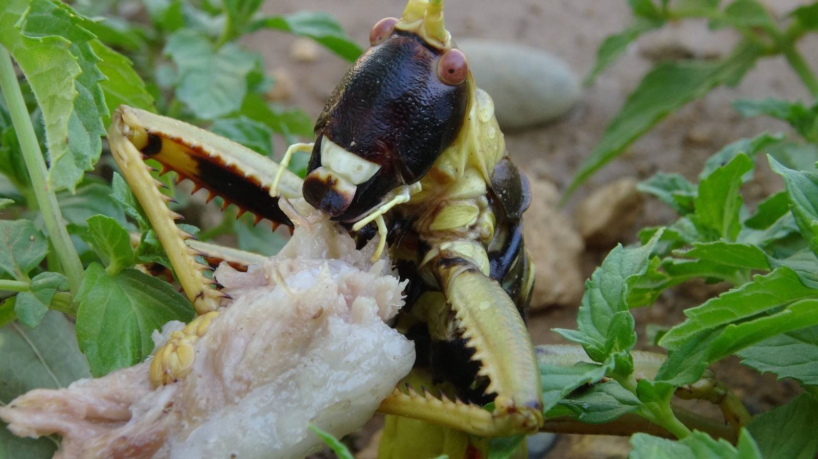 Bağ ve bahçe işlerinde çalışan çiftçilerden Tahsin Kaya ise "Her gün biz bahçe işlerinde çalışmak için buraya gelip gündelik işlerimizi yapıyoruz. Burada nane domates biber sulamasını yaparken böyle arada sırada çapa yaparken baktık dev bir çekirge gördük televizyonlarda ve internette bunların etçil olduğunu az çok biliyorduk. Biz zannediyorduk ki bu dev çekirgeler yeşillikle besleniyor. Ama televizyon ve internetten bunların etçil olduğunu öğrenince biz de merak oldu. Bizde burada mangal yakmıştık ve eti verelim arkadaşımla birlikte bakalım yiyecek mi dedik ve eti verdik baktık eti yedi şaşırdık kaldık" diye konuştu.