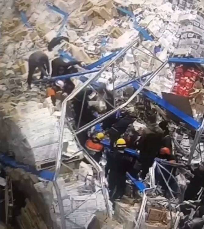 Rusya’nın Sibirya bölgesindeki Krasnoyarsk kentinde büyük bir gıda deposundaki yaklaşık 10 metre yüksekliğindeki çok katlı raflar çöktü. Durumu fark eden işçiler can havliyle kaçmaya başladı. İşçilerden biri ilk yıkılan raflardan kaçıp yandaki raflara saklandı. Ancak talihsiz işçinin saklandığı raflar da çöktü. Çöken rafların altında kalan işçi ağır yaralandı.