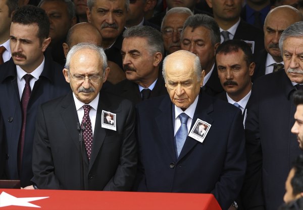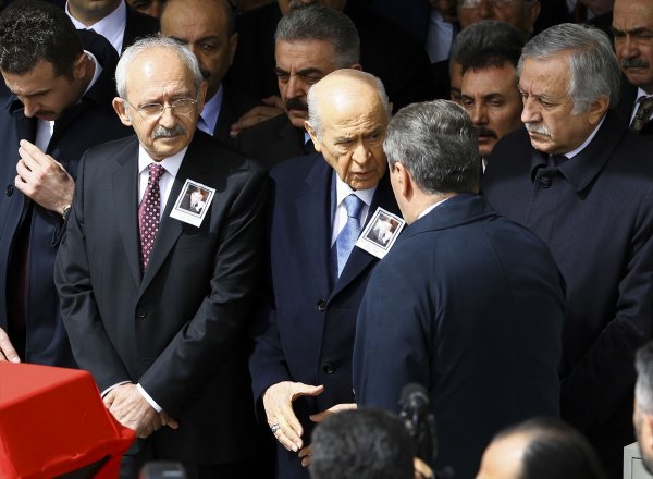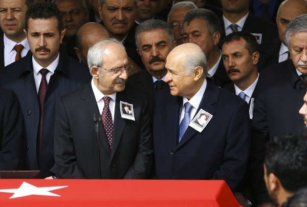 MHP lideri Devlet Bahçeli ile CHP lideri Kemal Kılıçdaroğlu bugün, eski büyükelçi ve milletvekili Deniz Bölükbaşı için Kocatepe Camisi'nde düzenlenen cenaze töreninde bir araya geldi.