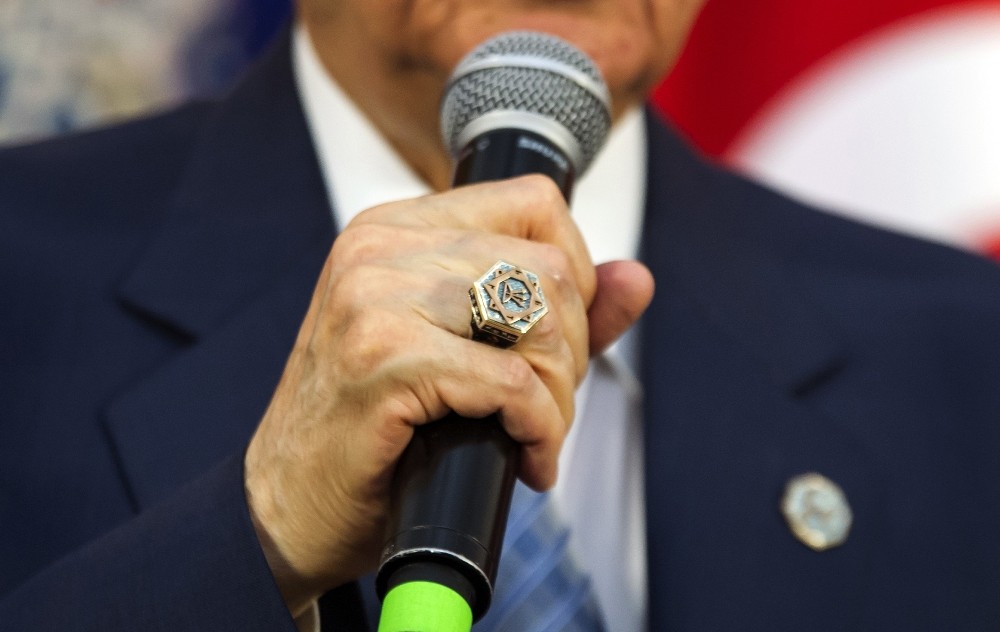 Yüzüğün çevresinde ise eski Türk alfabesi ile yazılı 24 Türk boyunun isimleri bulunuyor. Bahçeli’nin ceketinde de aynı şekilde üç hilalin olduğu 8 köşeli bir rozet olduğu görüldü.