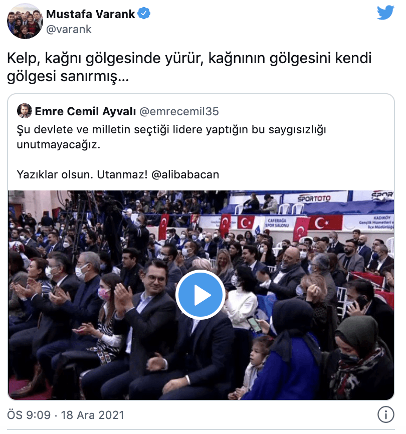 Twitter hesabından Ali Babacan'ın konuşmasının videosunu alıntılayan Bakan Varank şu paylaşımı yaptı: