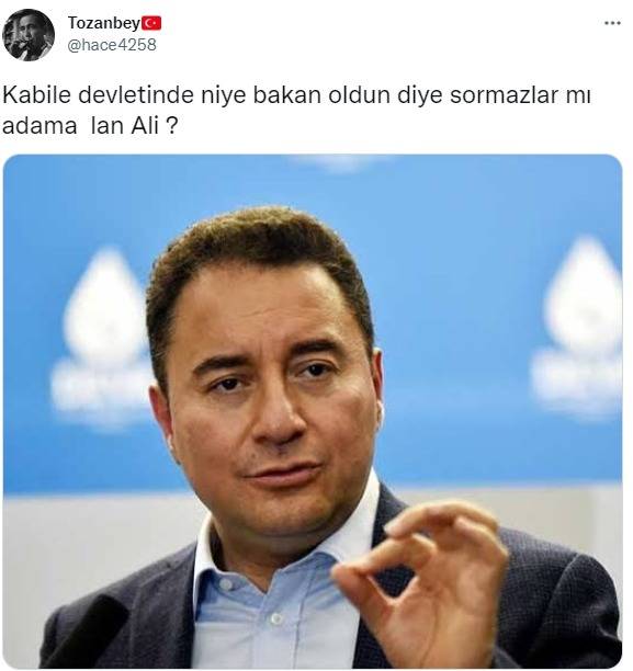DEVA Partisi Genel Başkanı Ali Babacan partisinin Kadıköy İlçe Kongresi'nde yaptığı konuşmada Cumhurbaşkanı Erdoğan ve kabineye ilişkin olarak ''Kabine kelimesi yerine kabile kelimesi daha doğru. Reis, reis dedikleri de şu anda maalesef kabile devletinin reisi" ifadelerini kullandı.