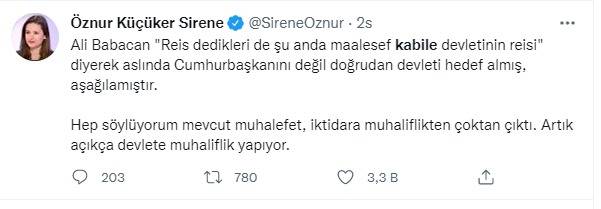 Cumhurbaşkanı Recep Tayyip Erdoğan için 'Kabile devletinin reisi' diyerek Türkiye’ye ve Cumhurbaşkanı Erdoğan’a saldıran Ali Babacan'a tepki yağıyor.