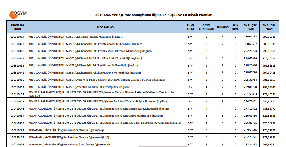 DGS TABAN VE TAVAN PUANLARI İÇİN TIKLAYINIZ