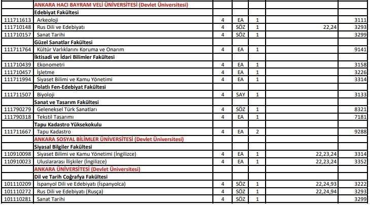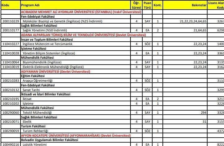 Yayımlanan kılavuzda puanlar kontenjan bilgileri yer aldı.
