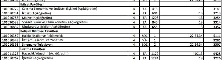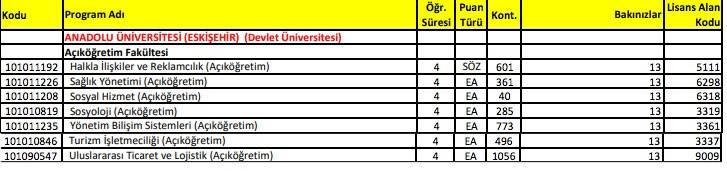 DGS ek tercih AÖF taban puanları 2021 DGS ek tercih AÖF boş kontenjanları