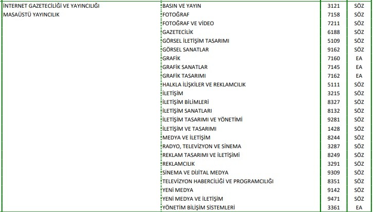 DGS ile hangi bölümlere geçiş yapılır? DGS geçiş yapılabilecek bölümler: