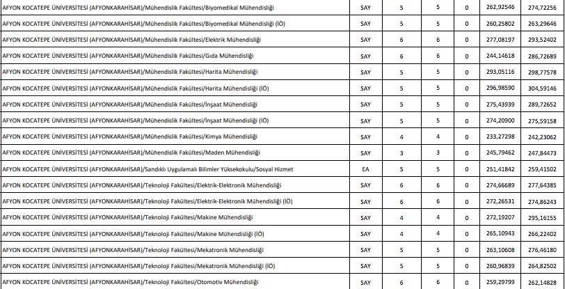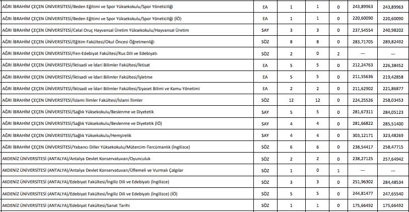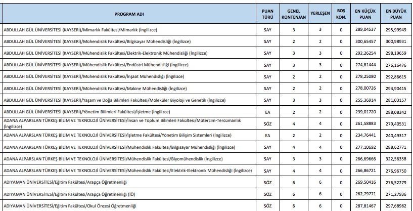DGS taban puanları için (tüm bölümler) tıklayınız