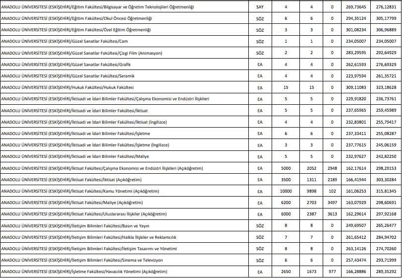 DGS açıköğretim puanları 2020