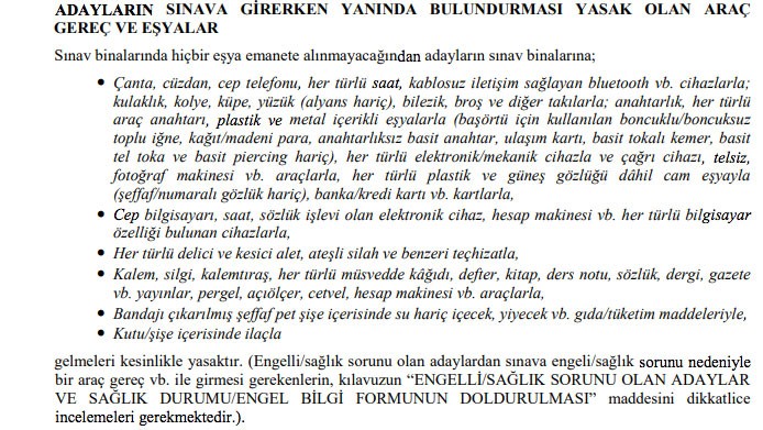 Sınavda adaylara sayısal ve sözel bölümden oluşan bir yetenek testi uygulanacaktır. Testte, 50 sayısal ve 50 sözel olmak üzere toplam 100 soru yer alacaktır.